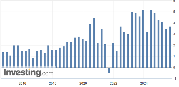 - El crecimiento, por otro lado, ha mostrado cierta fortaleza al repuntar el dato del PIB por encima del 3% en dato de agosto y las ventas minoristas continúan en tendencia alcista. En cambio el índice de producción industrial sigue en niveles inferiores a los años previos a la pandemia.